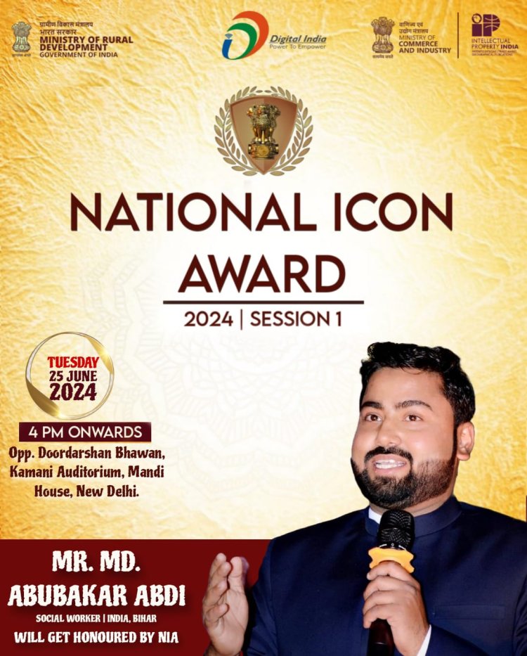 Abubakar Abdi, originally from Darbhanga district of Bihar, will be honored with the National Icon Award 2024 in New Delhi.