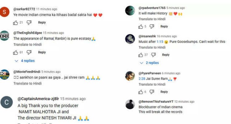 Ramayana VFX artist Nimit Malhotra और वह फिल्म प्रोड्यूसर भी हैं। उन्होंने इंस्टाग्राम पर फिल्म की पहली झलक शेयर की, जिस पर यूजर्स के ताबड़तोड़ कमेंट्स आ रहे हैं। एक यूजर ने लिखा, 'रणबीर कपूर OMG, राम के अवतार में क्या झलक है।' एक और कमेंट है, 'रणबीर की 2 सेकेंड की उस झलक ने मेरा दिमाग हिला दिया।' एक ने लिखा, 'ये फिल्म इतिहास रचेगी।' एक बोला, 'मेरे तो रोंगटे खड़े हो गए।'