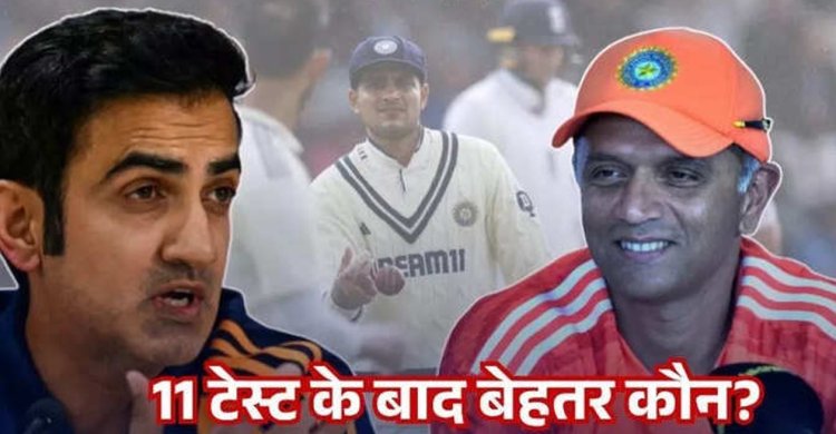 शुरुआती 11 मैचों के बाद गौतम गंभीर और राहुल द्रविड़ की कोचिंग का रिकॉर्ड।